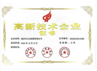 揚州市立達樹脂有限公司(江蘇立潤達新材料科技有限公司)建于1993年,座落在風景秀麗人杰地靈的歷史文化名城揚州北郊省級高新區(qū)內,屬國家高新技術企業(yè)。
